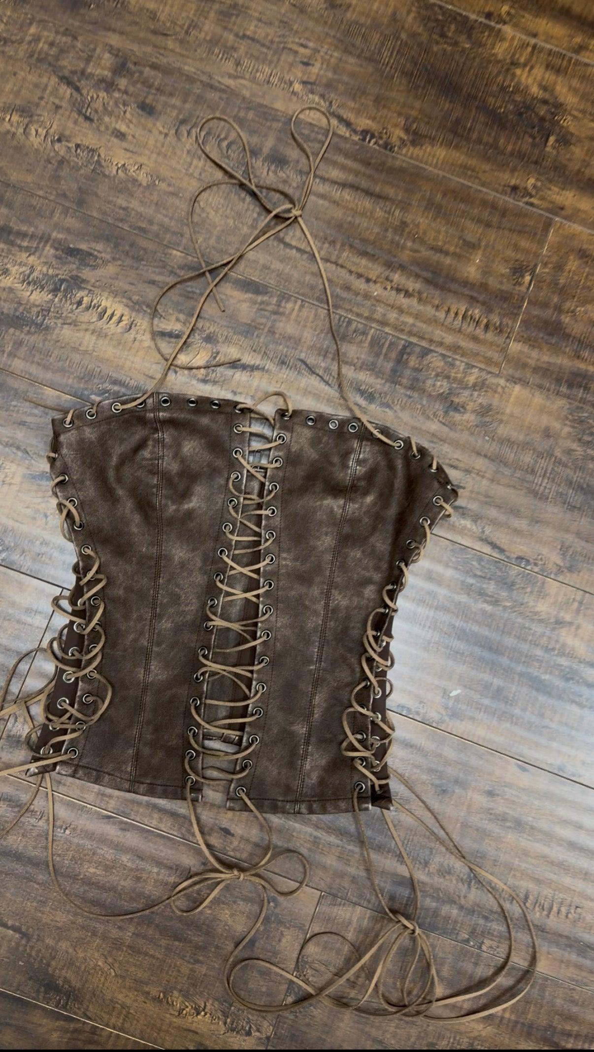 Washed PU Leather Longline Halter Corset Top